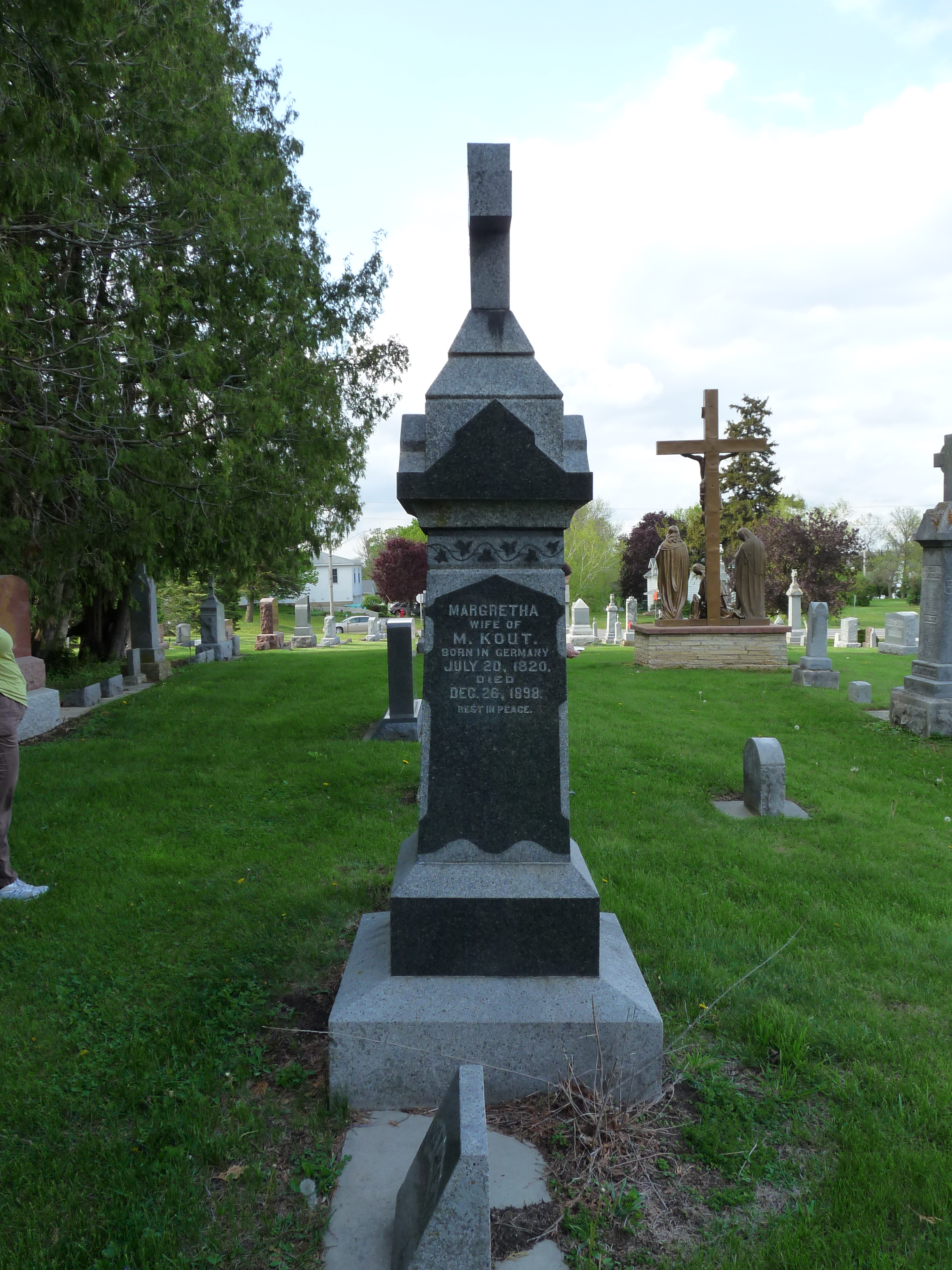 Margaretha Konzen Kout was born 30 Aug 1820 in Kruchten, Germany, and she died 26 Dec 1898 in Stapleton, Chickasaw, Iowa.