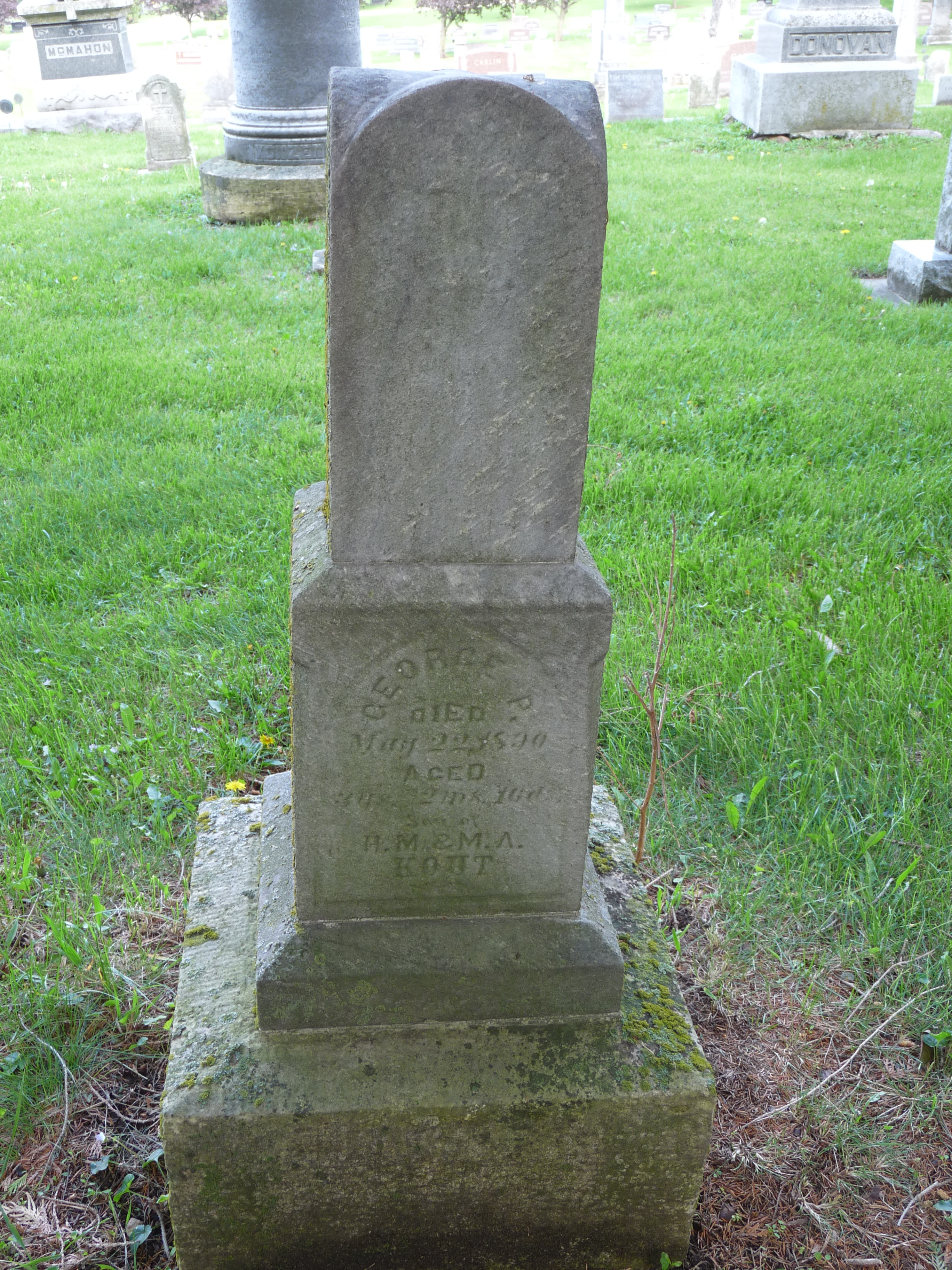 George Peter Kout, son of Hubert & Mary Agnes Meyer Kout, was born 6 Mar 1887 in New Hampton, Chickasaw, Iowa, and he died 22 May 1890 in Chickasaw, Iowa.