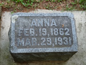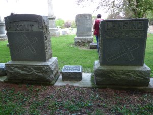 Then we headed to Our Lady of Mount Carmel Cemetery in Lawler for Mathias & Sophia Konzen and Margaretha Konzen Kout & her family’s graves. At the back of the cemetery, the Konzens and the Kouts are buried right next to each other. Margaretha & Mathias Kout’s son Peter Kout and his wife Anna Gilbert and some of their kids are also right next to Margaretha and Mathias Kout.